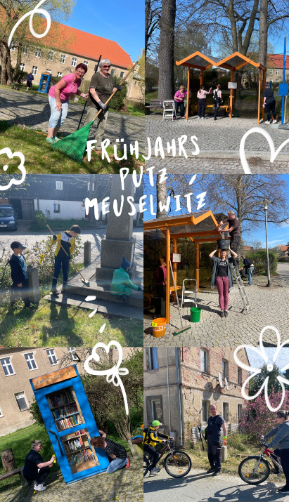 Über 30 Helfer unterstützen heute den Frühjahrsputz in Meuselwitz… dabei haben wir ordentlich angepackt und Ordnung gemacht… aber es sind auch neue Dinge entstanden. Unser Schneckenberg erblüht im neuen Glanz. Schaut doch mal im Friedenstal vorbei. Und es gibt nun auch einen Hundekotbeutelständer im Dorf – für noch mehr Sauberkeit 😉